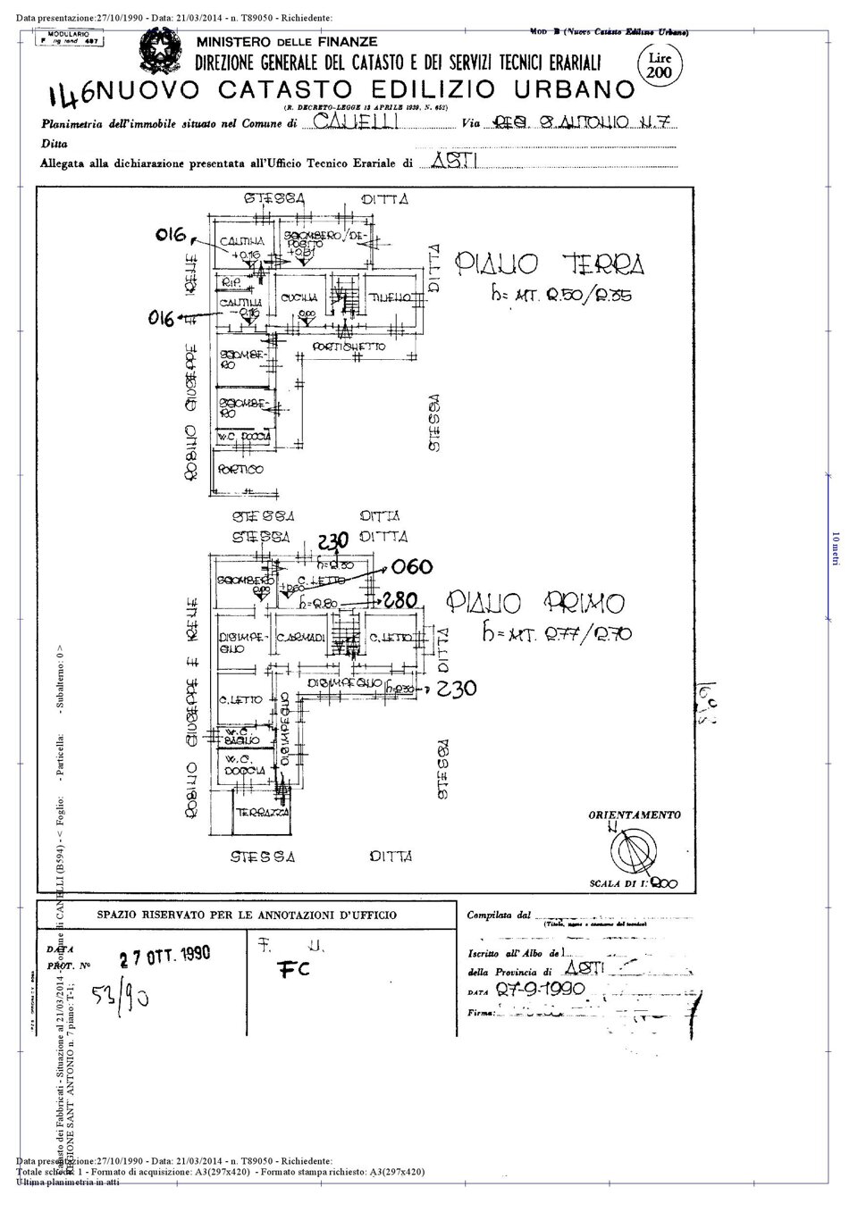 Terreno pari a mq. 8850 coltivato a vigneto (tipologia moscato) e non scorporabile dal fabbricato.